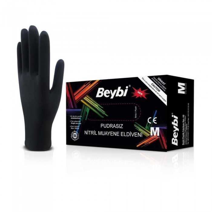 Beybi Muayene Eldiveni Nitril Pudrasız 100 Adet Siyah - Medium